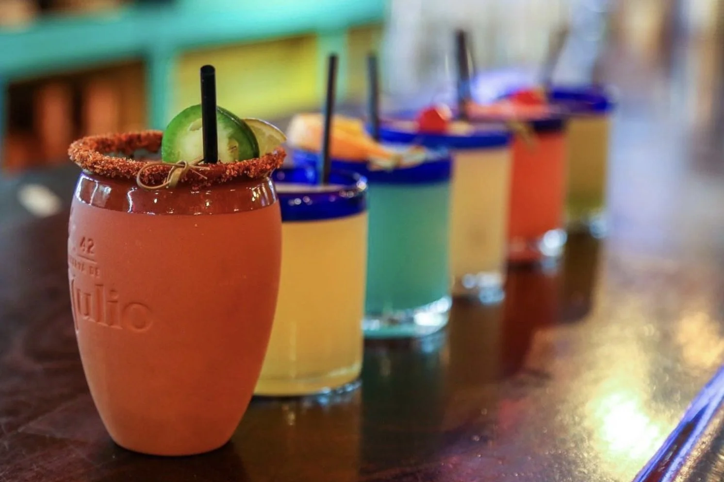 Authentic Mexican & Caribbean food, mojitos, margaritas, a full Miami-style wall of frozen drinks to choose from, and rotating DJs playing latin tunes every weekend.